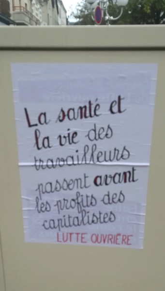 Dans cette société, plus les travailleurs s'épuisent au travail, voire mettent leurs vies en danger, plus les actionnaires et la bourgeoisie encaissent de dividendes. Sous couvert d'union nationale, contre le virus, l'exploitation et la lutte de classe continuent. Et à côté de la sacro-sainte propriété privée et de la recherche du profit, la vie des travailleurs ne pèse pas lourd. Alors, il faut que nous nous souvenions de ce qu'écrivait Anatole France, après la première guerre mondiale : «on croit mourir pour la patrie, on meurt pour des industriels ». Si nous ne voulons pas que cela se reproduise, il va falloir se battre pour sauver notre peau.